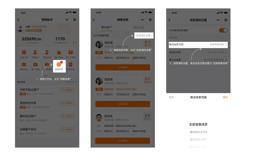 销售线索自动化:系统自动将顾客行为信息推送给导购,导购可利用这些信息进行有效的客户沟通和服务。