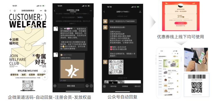 在过去,法桐的顾客入会及交易数据只留存在POS系统中,线下营销活动依赖于发放纸质优惠券和短信触达,存在会员信息线上线下不同步和权益不共享的问题。顾客购物场景单一,离店后的营销难以实施,顾客操作成本高,留存效果差。