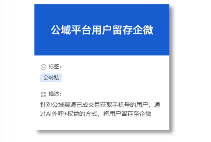 因此需针对公域渠道已成交且获取手机号的用户,通过AI外呼+短信+权益的方式,将用户留存至企微