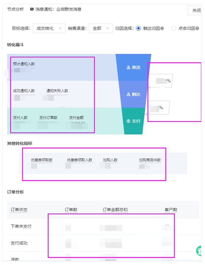 数据漏斗分析:通过新的CRM工具,宝宝馋了能够清晰查看每个人群的数据情况和营销活动的效果,从而进一步优化策略。