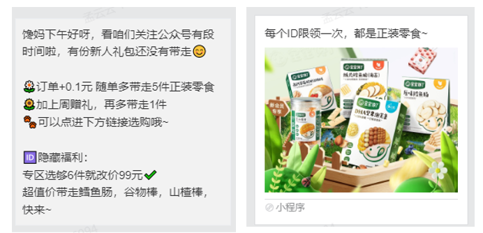 宝宝馋了利用有赞的技术赋能,通过CRM系统和营销画布的应用,对用户行为进行细致分析和精准营销,公众号活跃未购粉丝促转化,筛选近X天公众号活跃但近X天未购买的粉丝,通过专属福利刺激粉丝转化。