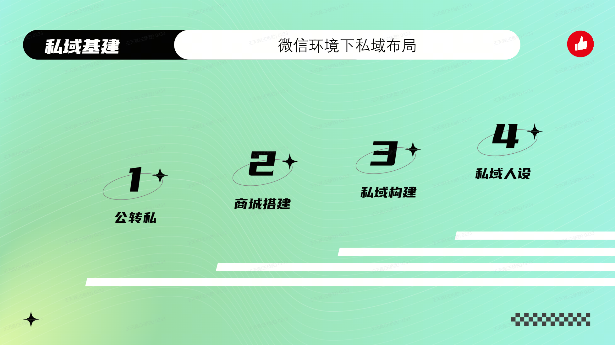 以上 4 个步骤,是一套完整的微信私域运营体系中的基建方案。需注意的是,这只是一个基础的基建方案,整个私域体系中,私域基建只是第一步,具体的品牌私域运营方案需根据品牌自身的情况进行定制。