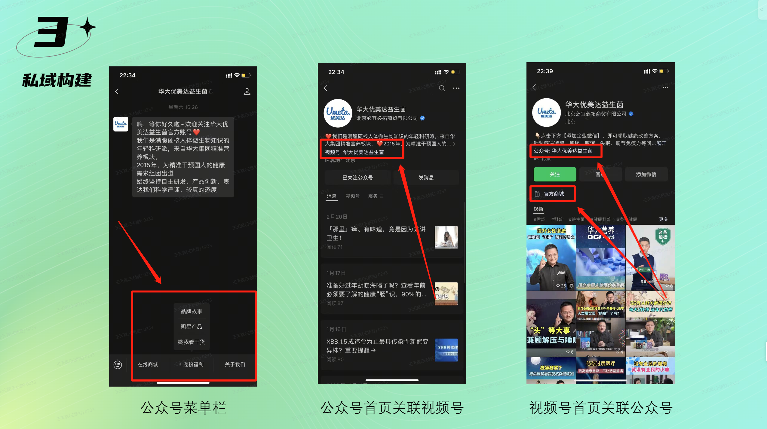 第三步是私域整体的构建,如何将整个私域生态包括视频号、公众号、小程序,以及企微等连通起来?
