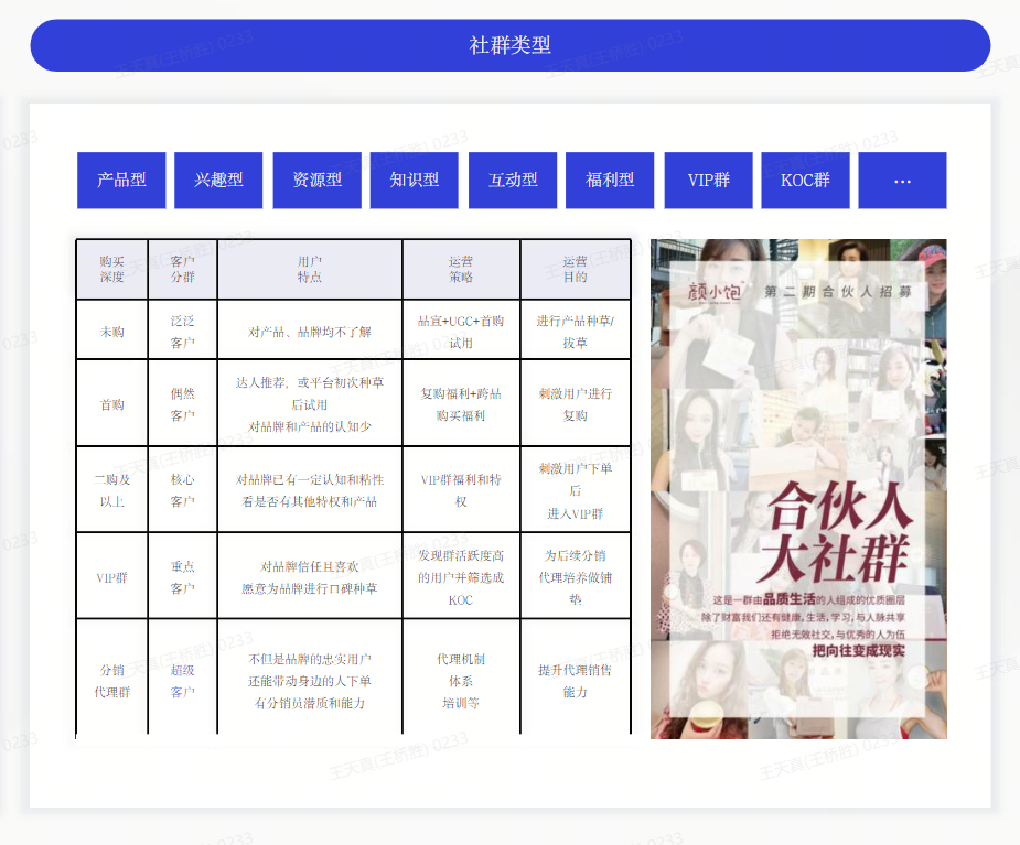 社群类型运营则是针对不同的社群类型采取不同的运营模式。例如,薅羊毛福利群的运营模式与其他社群就有所不同,可以进行分层运营。