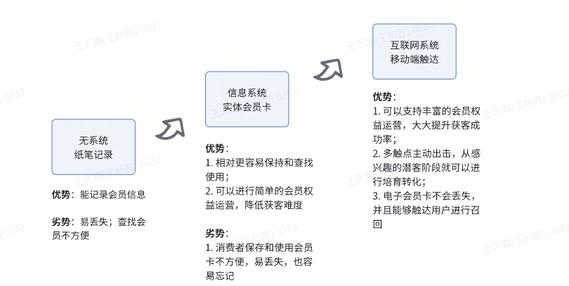 传统的线下营销模式中,顾客在店里消费达到一定金额后,商家通常会邀请顾客办理会员,以获取顾客的手机号码,方便后续的维护和运营,从而提高顾客的忠诚度,让顾客持续消费。为了使这套流程更加高效,商家会设计一套完整的会员体系,通过划分会员等级,将不同的权益与之挂钩,从而吸引和激励顾客。