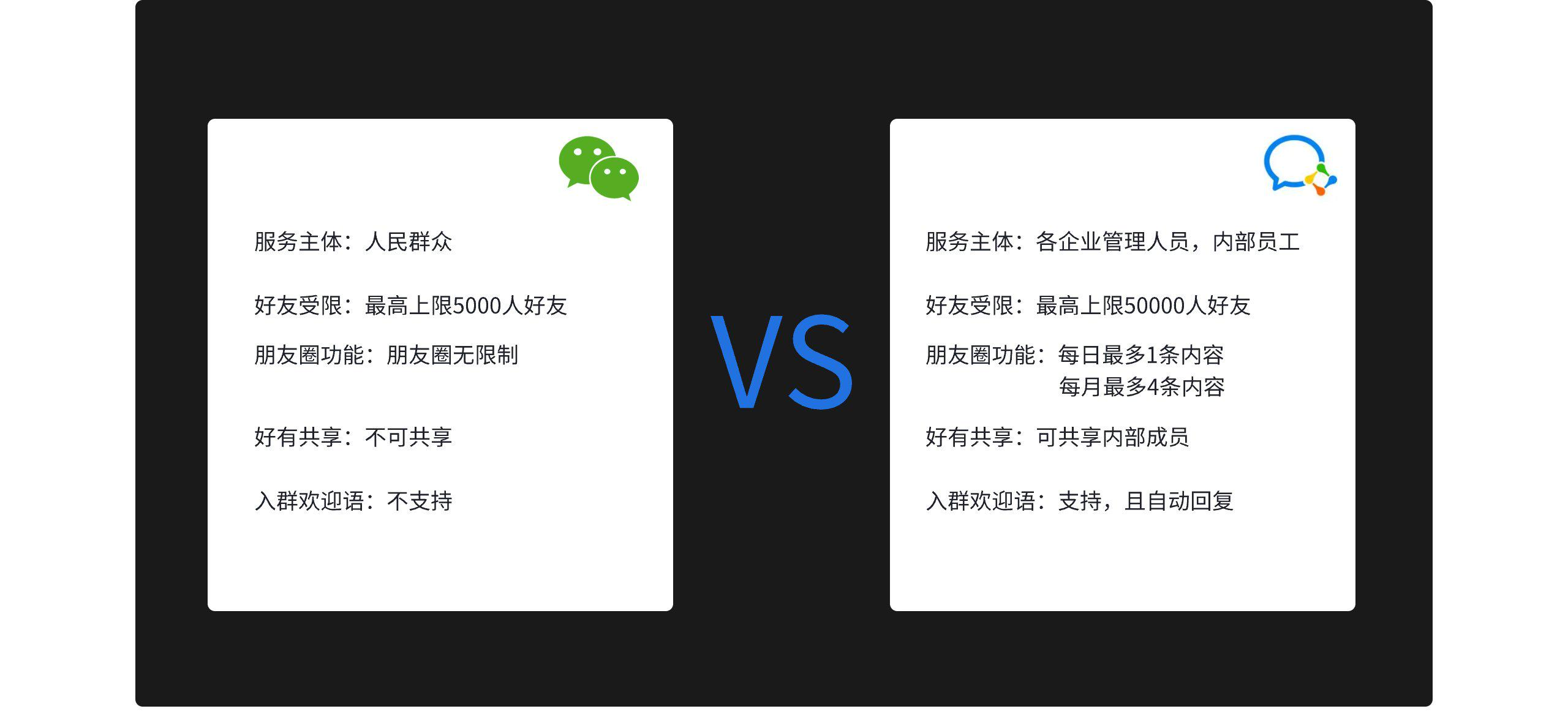 服务主体不同:个人微信面向所有个人;企业微信面向企业管理者,员工。