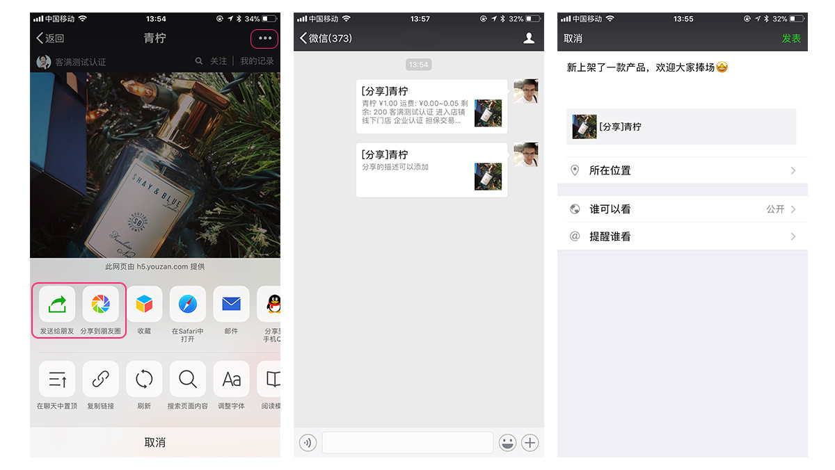 可将创建好的商品发送到朋友圈或者微信好友群,让大家围观。