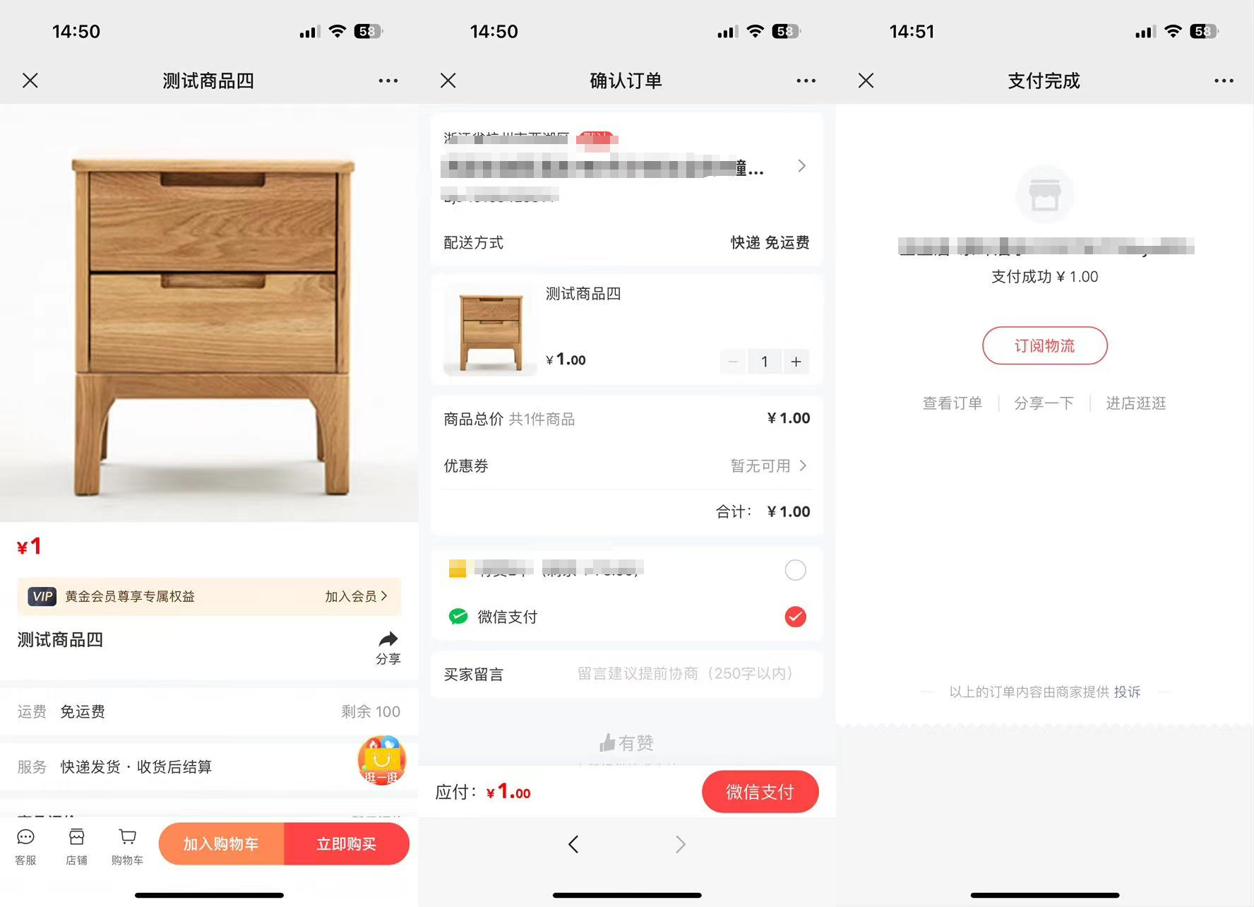 1、将推广的商品进行下单,体验整体下单流程: