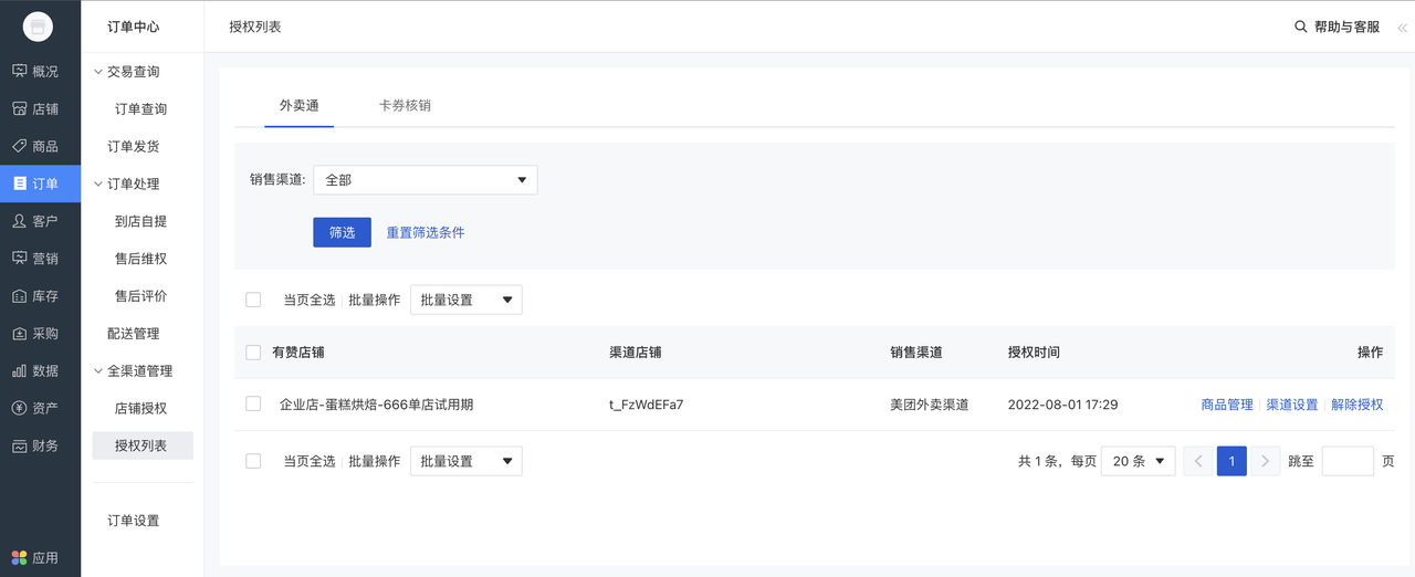 有的商家已有店铺,可以用吗?可以的(比如美团)的店铺进行授权绑定。授权绑定后有赞外卖渠道商品可以和外部店铺的商品关联