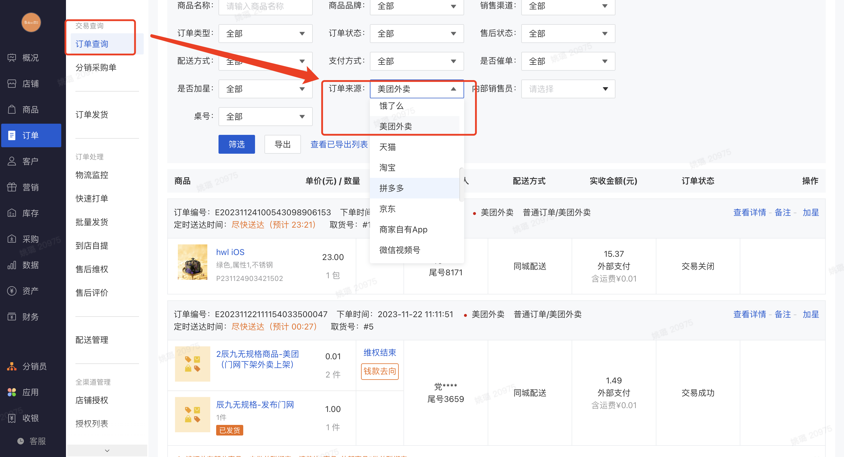 c. 订单退款互通:外卖订单全部退,部分退也会记录在有赞后台,便于商家追溯和分析