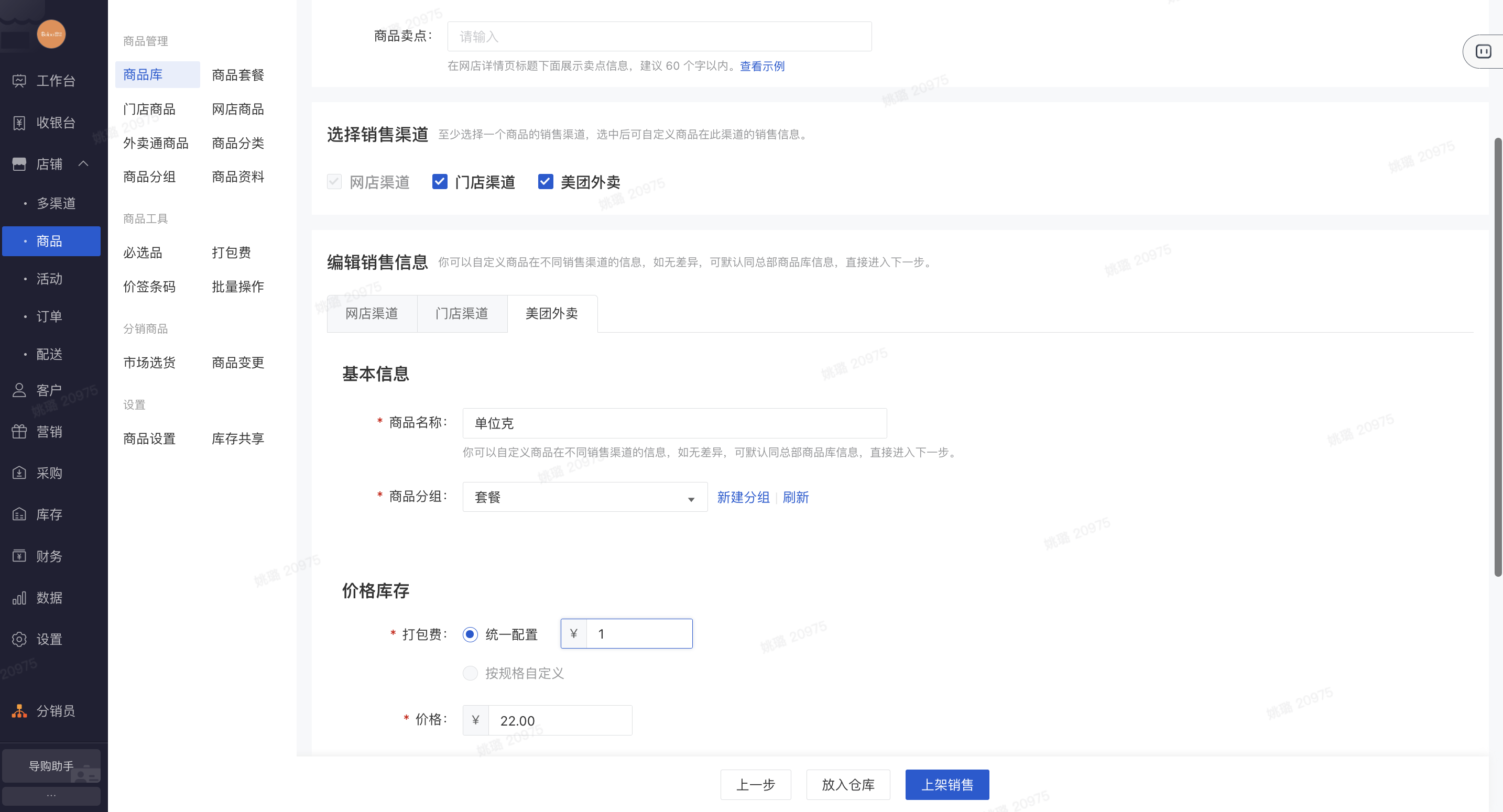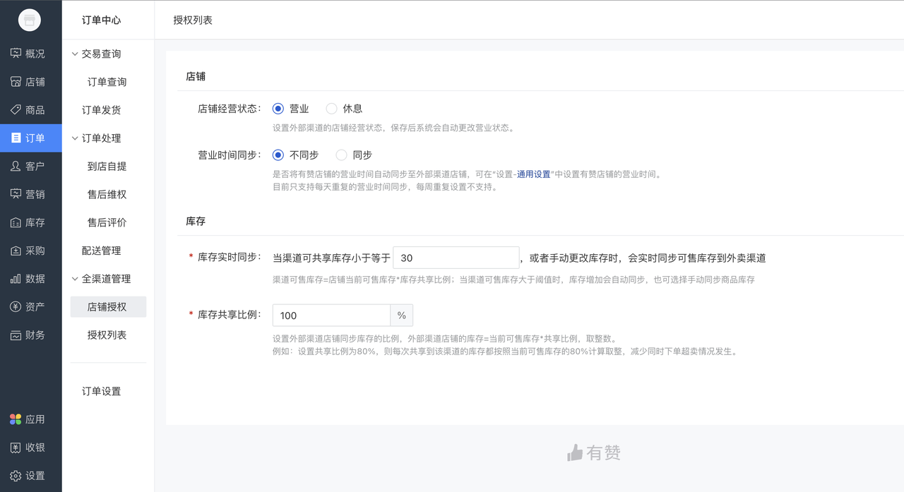 1. 可以设置小程序、美团、饿了么等不同渠道共享库存,库存共享比例,防止渠道超卖;