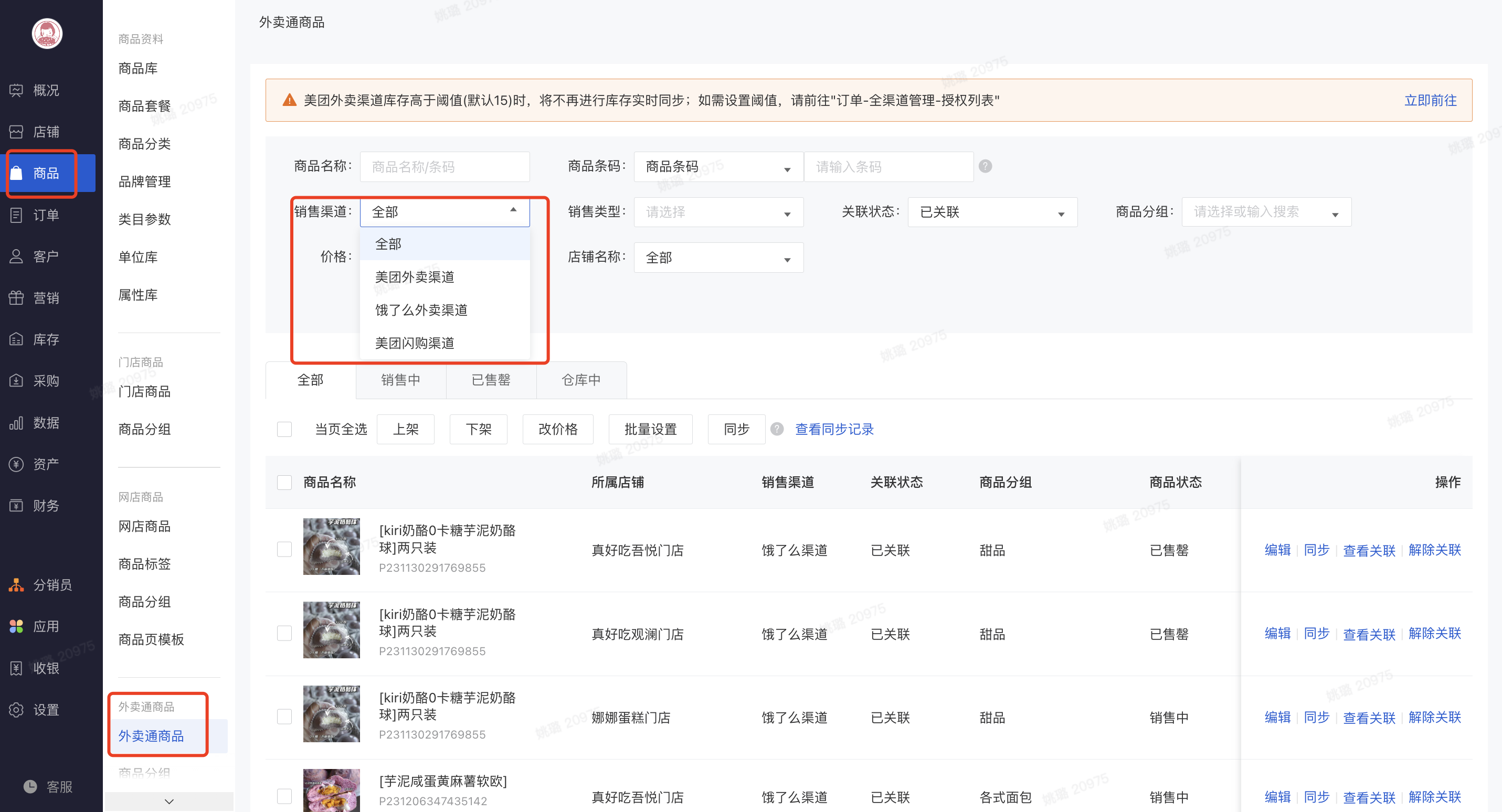 b. 支持【批量关联/同步】提效:支持快速同步外卖通商品到指定外部渠道,提高店务效率【此项能力2024年2月5日全已量上线】