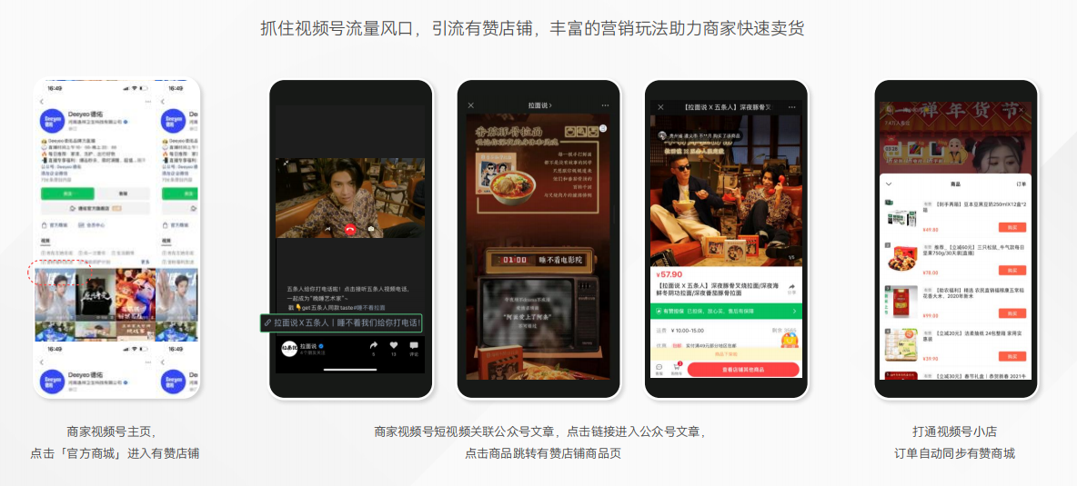 抓住视频号流量风口,直连12亿微信用户,商家的视频号主页可以直接引导用户进入有赞店铺,实现快速转化;短视频关联公众号文章,进一步提高转化率。