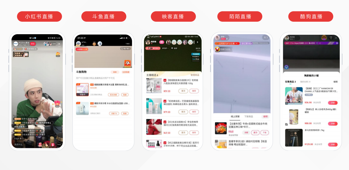 不仅如此,微商城还能够实现与更多直播平台的链接,包括但不限于:小红书直播、斗鱼直播、映客直播、陌陌直播、酷狗直播。这么多的直播方式,不怕商品卖不出去!