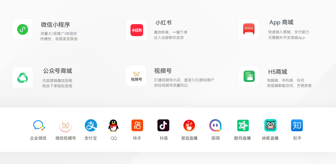 微商城打通微信、支付宝、小红书等10多个推广渠道,实现了全域覆盖,为商家提供了强大的曝光机会。这些渠道包括但不限于: