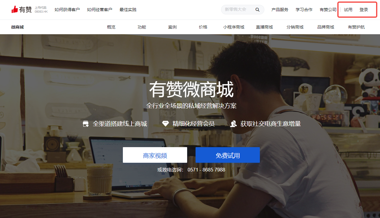 入口页面:微商城官网- 微商城管理系统,微商城开通-有赞微商城