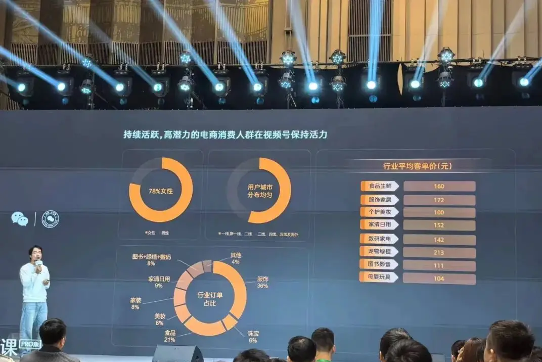 在2024微信公开课PRO上,腾讯公布部分微信视频号直播带货成绩,其中2023年GMV较前一年增长实现3倍增长,供给数量增长超过300%,订单数量增长超过244%。其中食品生鲜、服饰家居、个护美妆三大品类产品合计超 60%,最受用户喜爱;女性占比超70%,30到50岁“有钱有闲”群体贡献了40%用户增量。深入了解>>有赞视频号助手 - 微信视频号公域转私域营销自动化方案