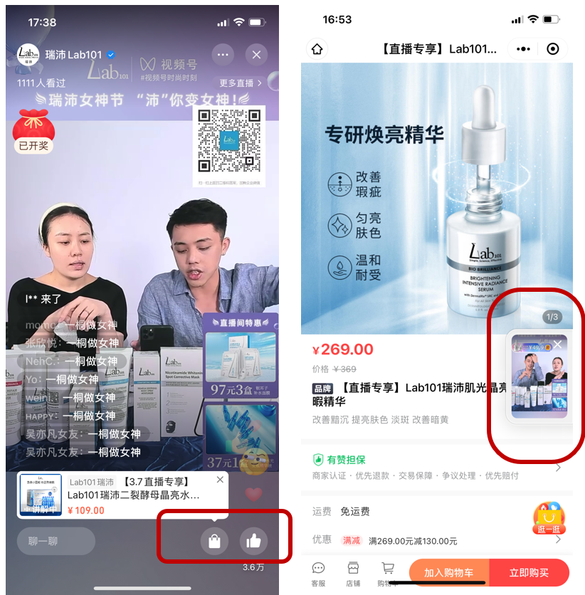无缝打通:直播间购物车可挂载有赞店铺小程序商品,短视频也可挂载商品,还可通过视频号带货中心等方式进行销售。