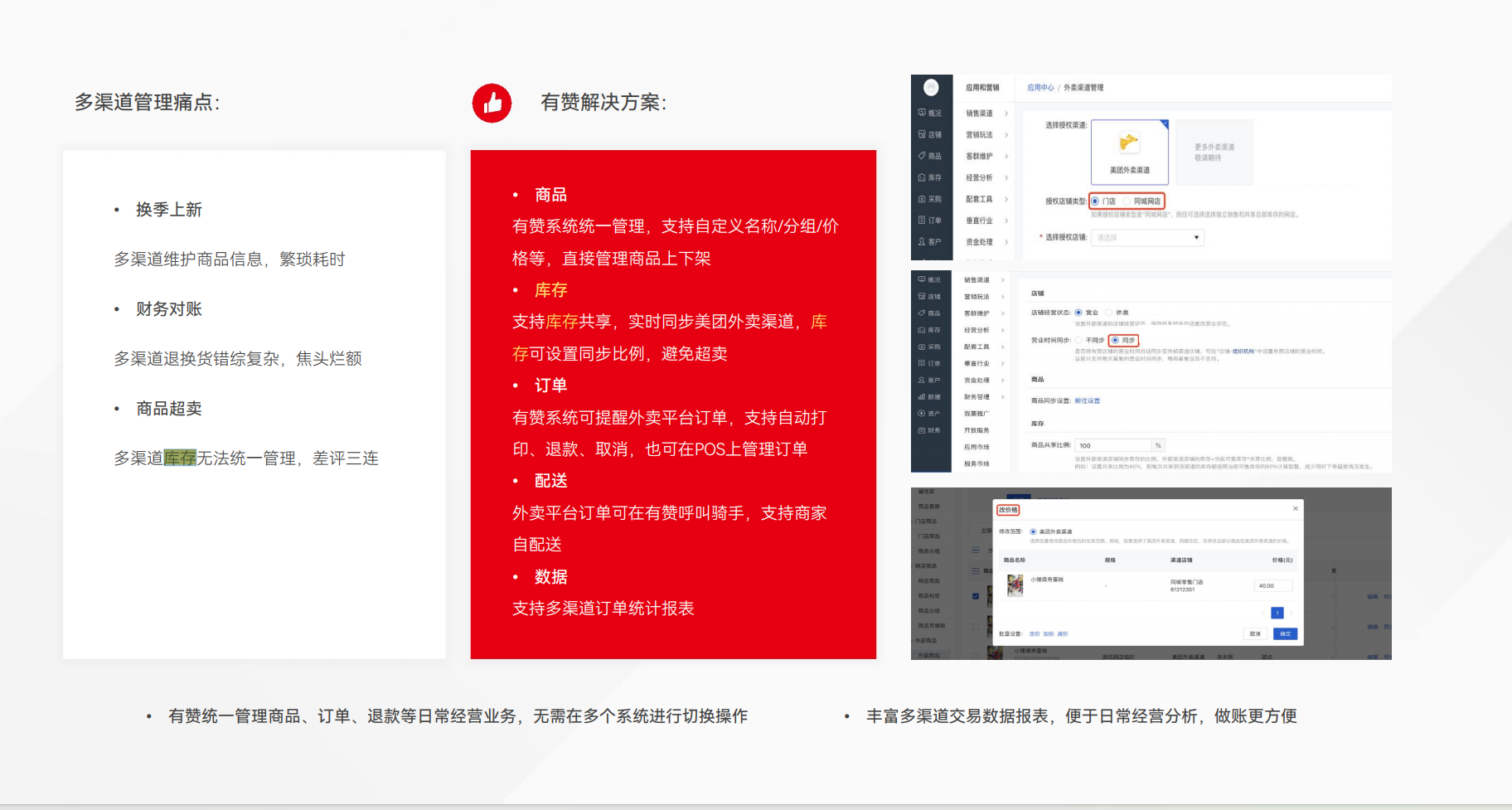 零售业商家是多平台一体化的主要受益者之一,包括滋补保健商家,商超便利商家。这类商家通常需要协调线上和线下的库存、订单和客户数据,保证经营的连续性和效率。