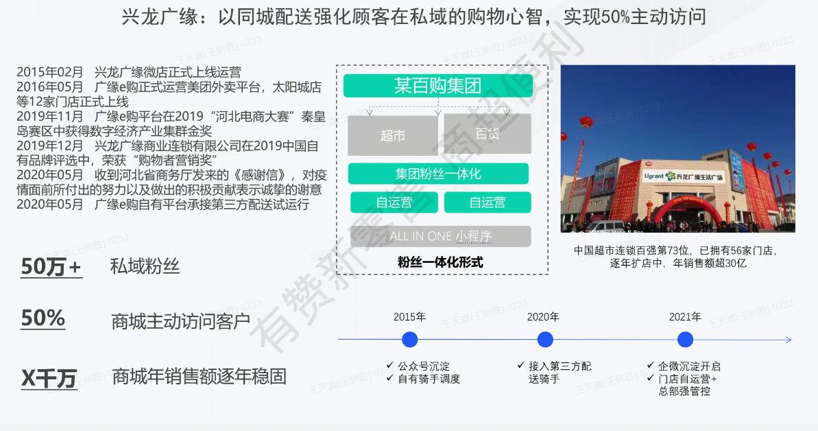 该超市通过有赞实现线上下单和线下配送,线上销售渠道占比达到50%以上。