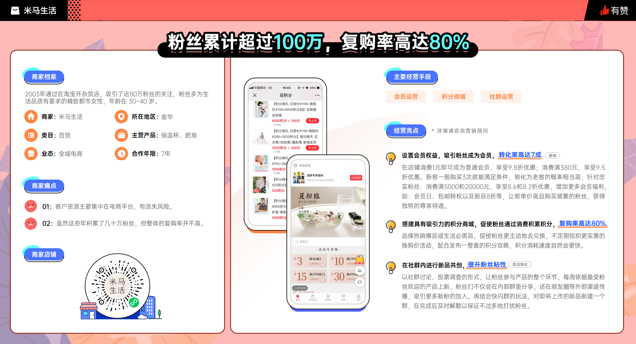 小程序商城积分运营粉丝累计超过100万,复购率高达80%