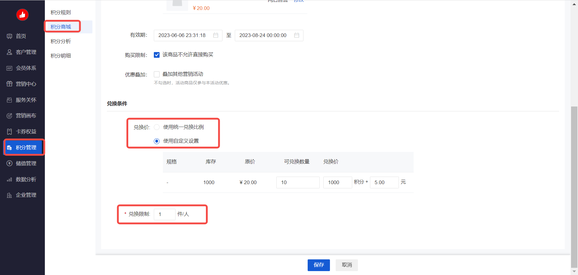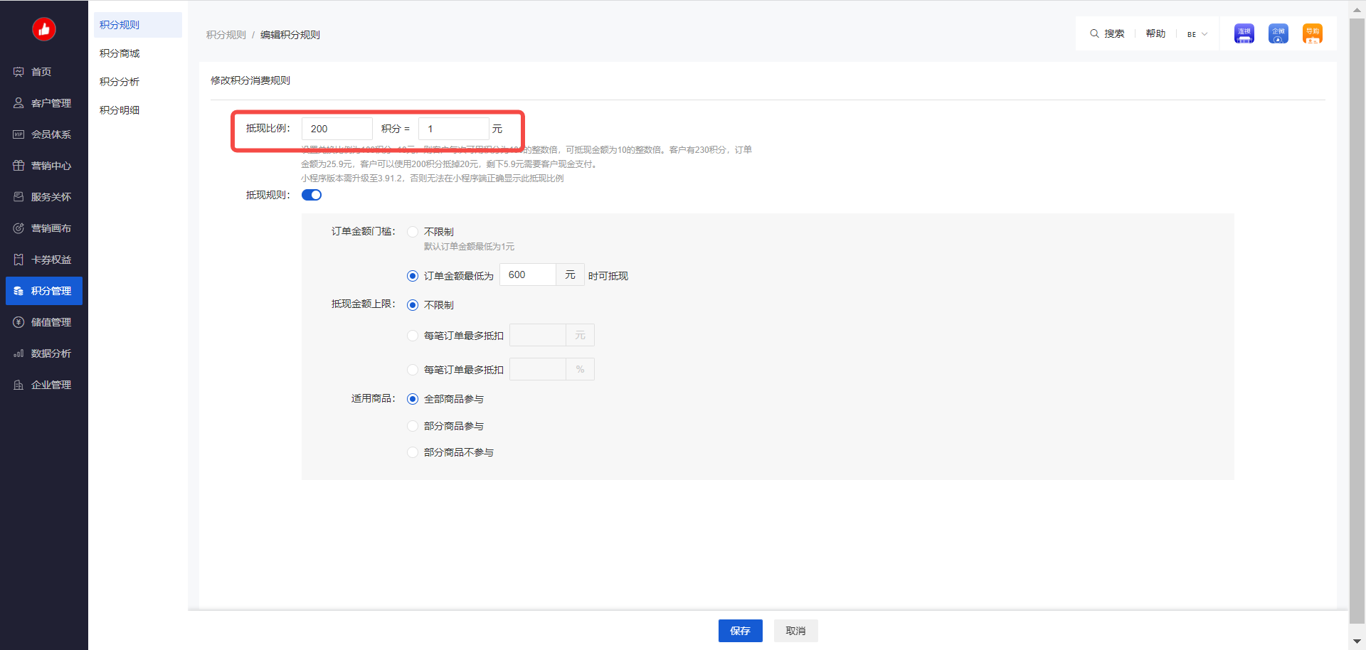 则 step2:CRM-积分管理-积分规则-设置积分消费规则