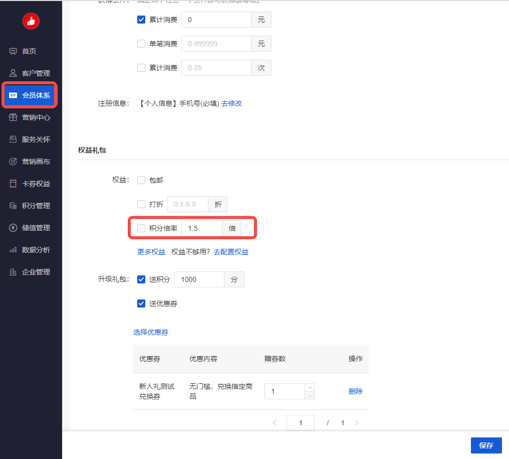 CRM-会员体系-会员等级(需调整的等级)-积分倍率
