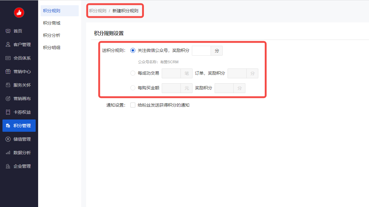 step3:CRM-积分管理-积分规则-新建积分规则 step4: