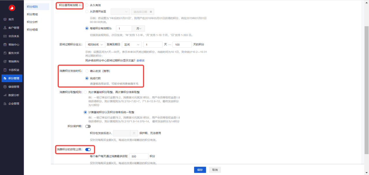 | step1:CRM-积分管理-积分规则-修改通用积分规crm 则 step2:CRM-积分管理-积分规则-设置积分消费规则 step3:CRM-积分管理-积分规则-新建积分规则 step4: CRM-会员体系-会员等级(需调整的等级)-积分倍率 ![]()