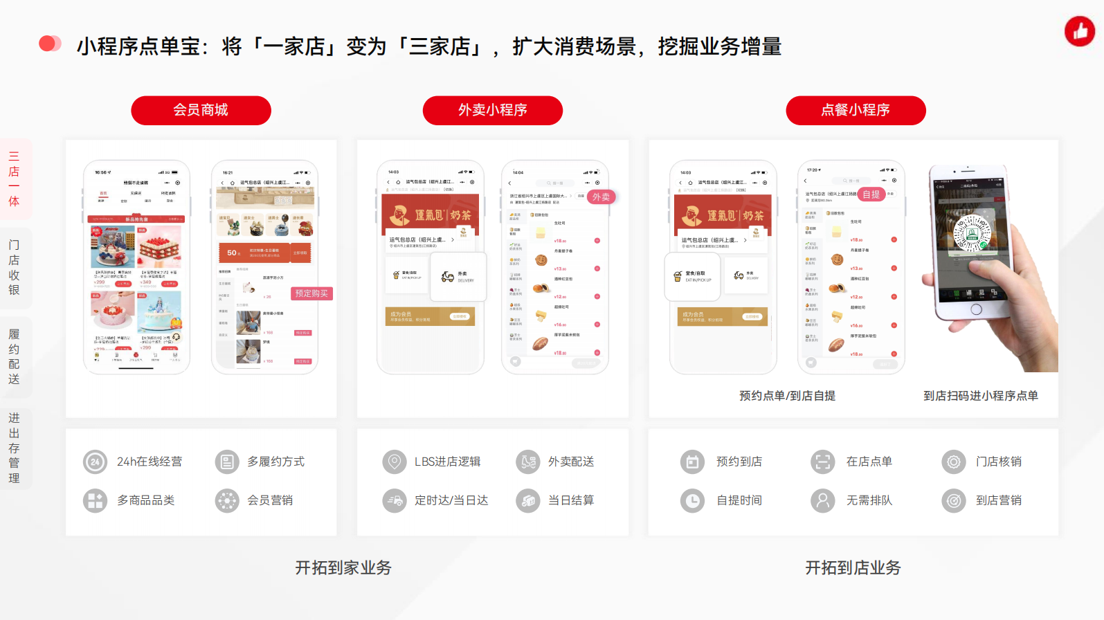 有赞提供门店全域一体化业态解决方案,门店可以开通线上商城,实现24小时不间断经营。