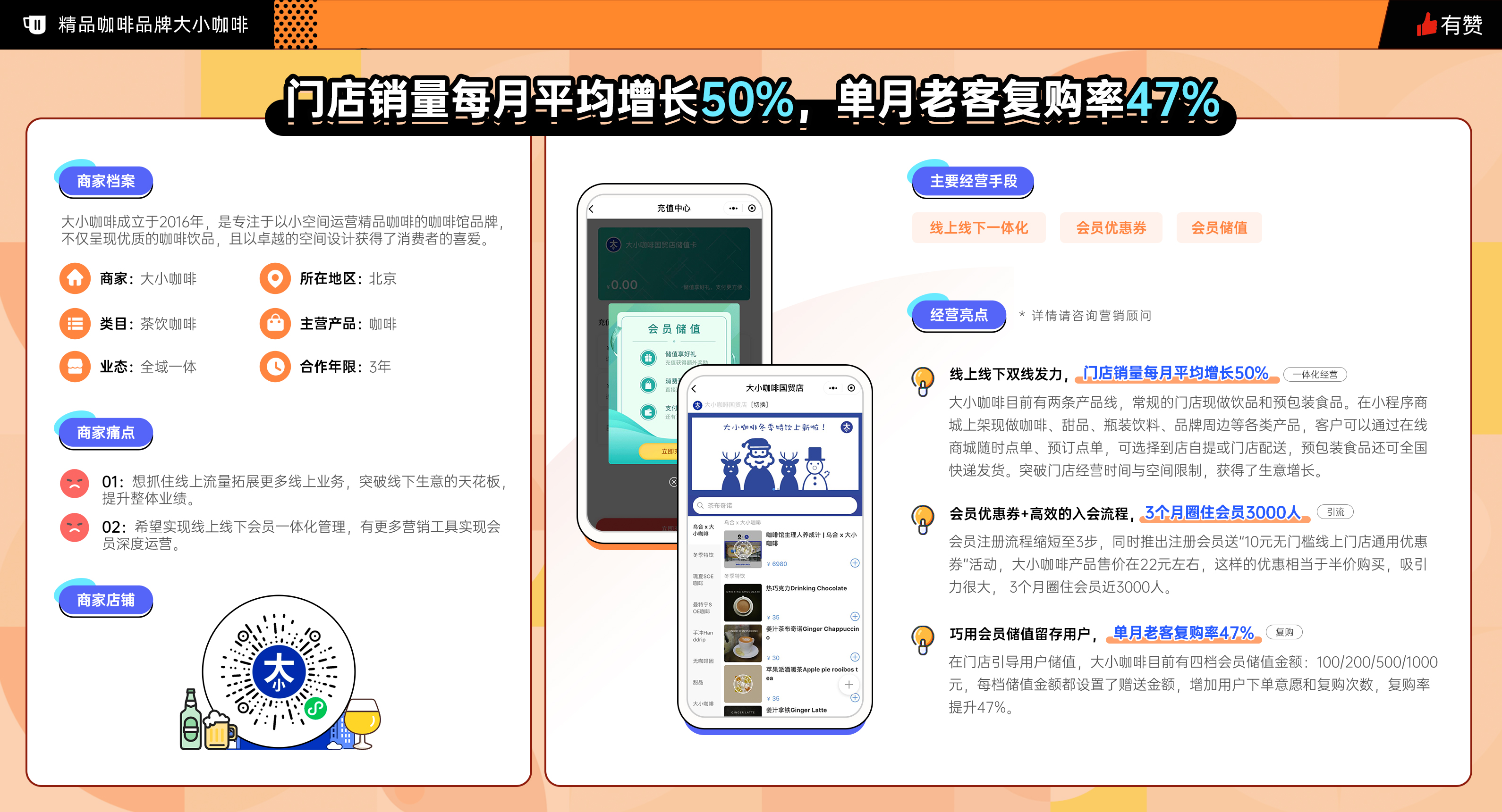 案例:咖啡门店销量每月平均增长50%,单月老客复购率47%
