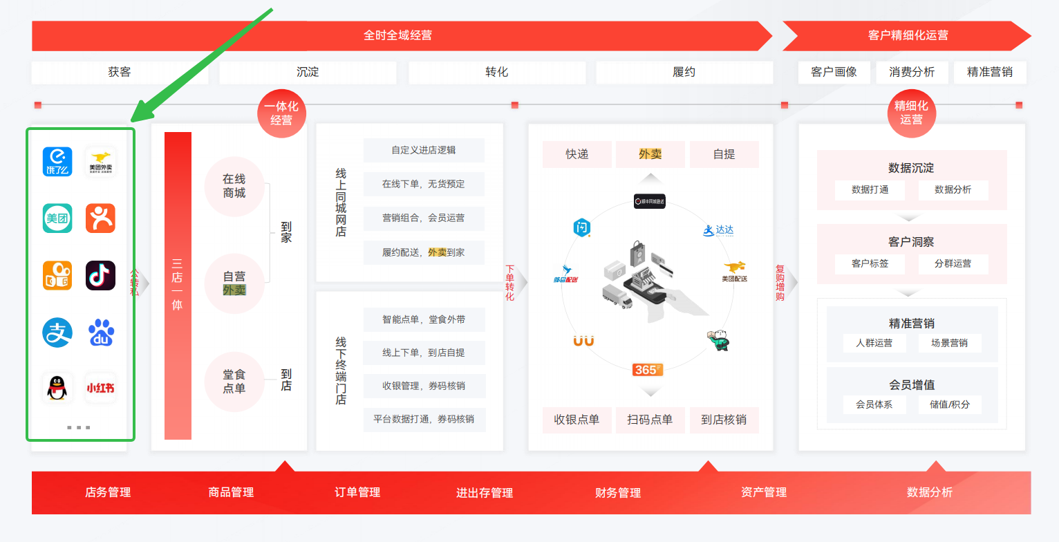 ��PS:小红书、抖音,快手等全平台,通过有赞全平台打通方案引流至私域商城合作专业外卖配送方。