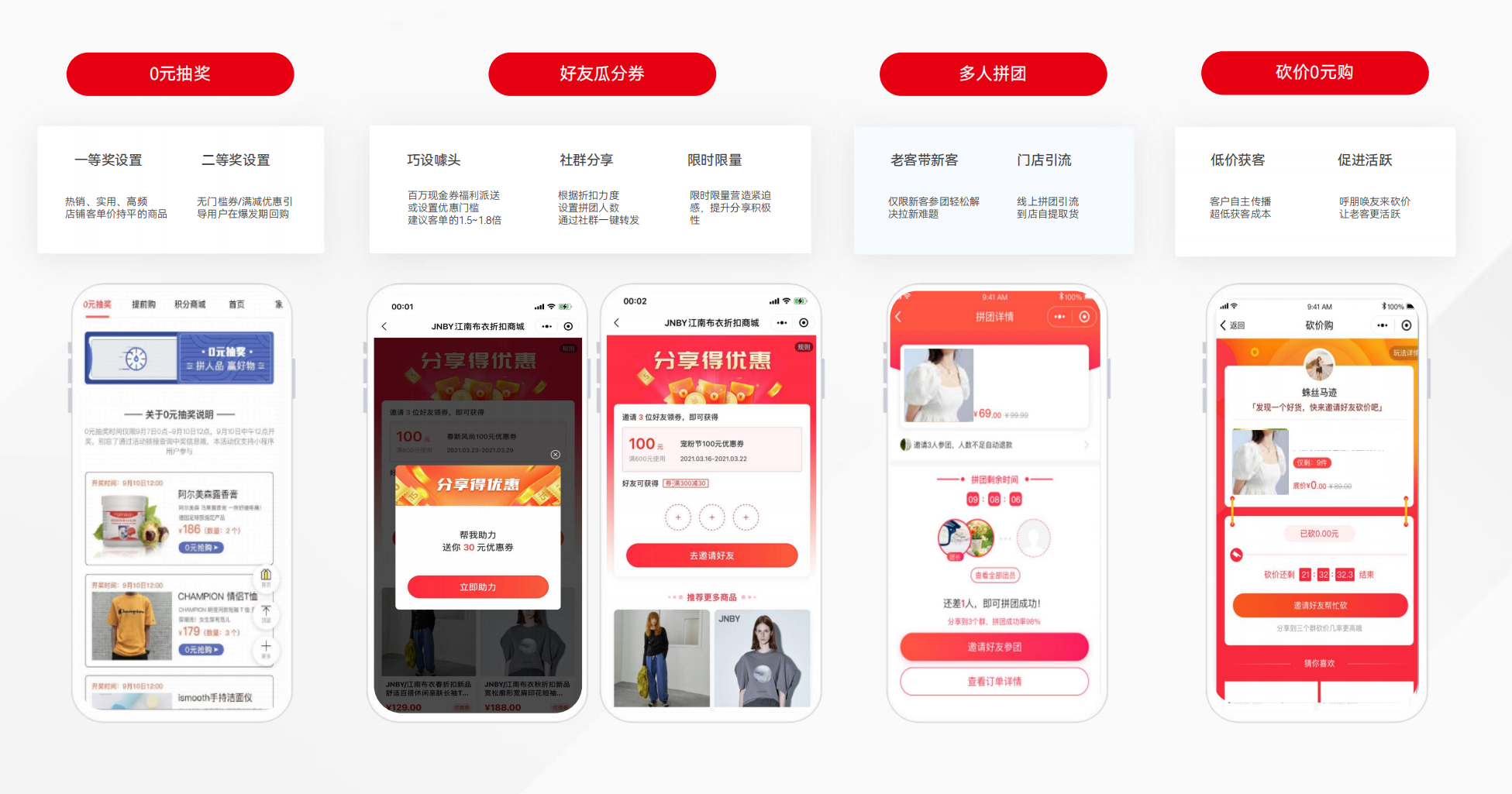 • 裂变活动:设计诸如拼团、秒杀和砍价活动,利用现有会员的社交圈带来更多新客户。