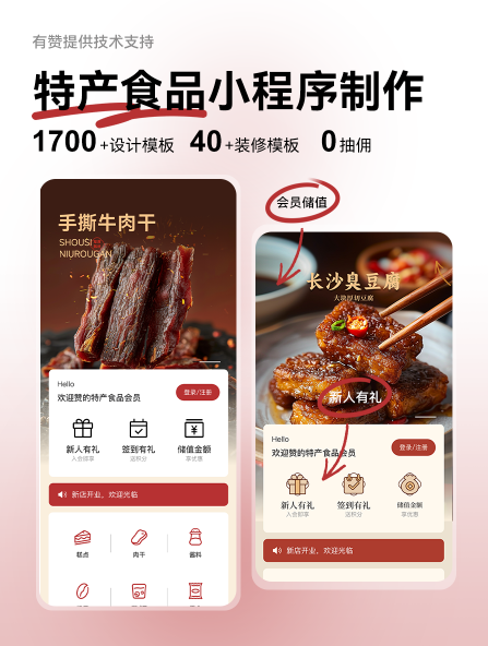 有赞提供了丰富的装修组件和行业模板,允许你通过拖拽方式进行店铺的装修。这一步无需技术开发即可完成,具体操作如下: