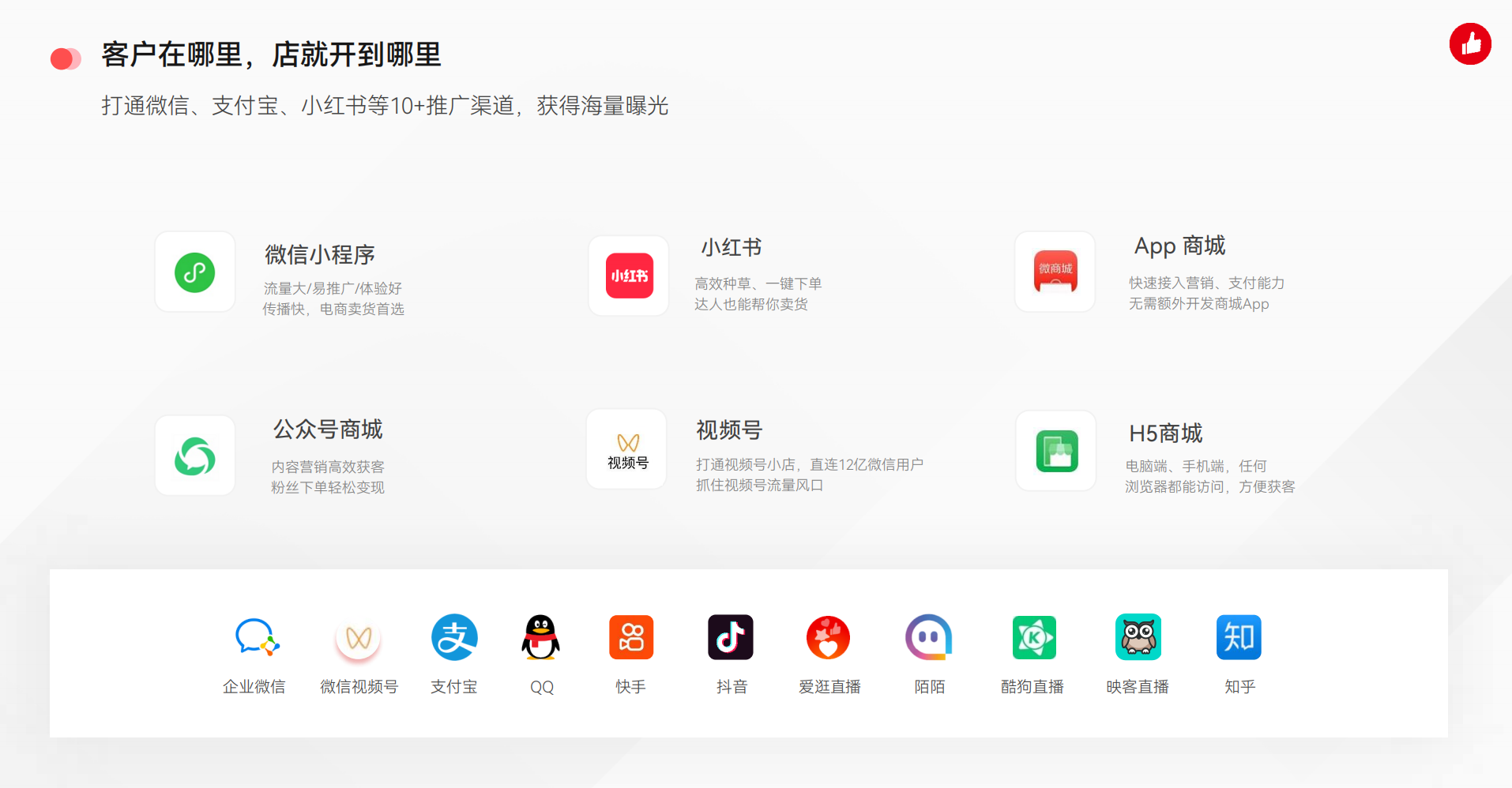 快速开启多渠道一体化经营,了解详情>>品牌商城全渠道引流获客,私域经营,复购营销