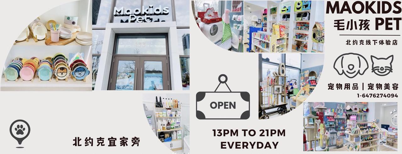 毛小孩の铺子宠物店,创建于 2018 年,创始人 Harris 是在加拿大的华人留学生,因热爱宠物在多伦多开始了自己的宠物品牌创业。经过五年的发展,到今天 Maokids Pet 已经成为大多伦多地区的高端宠物品牌零售店,除了零售外还开设宠物美容等服务类目。