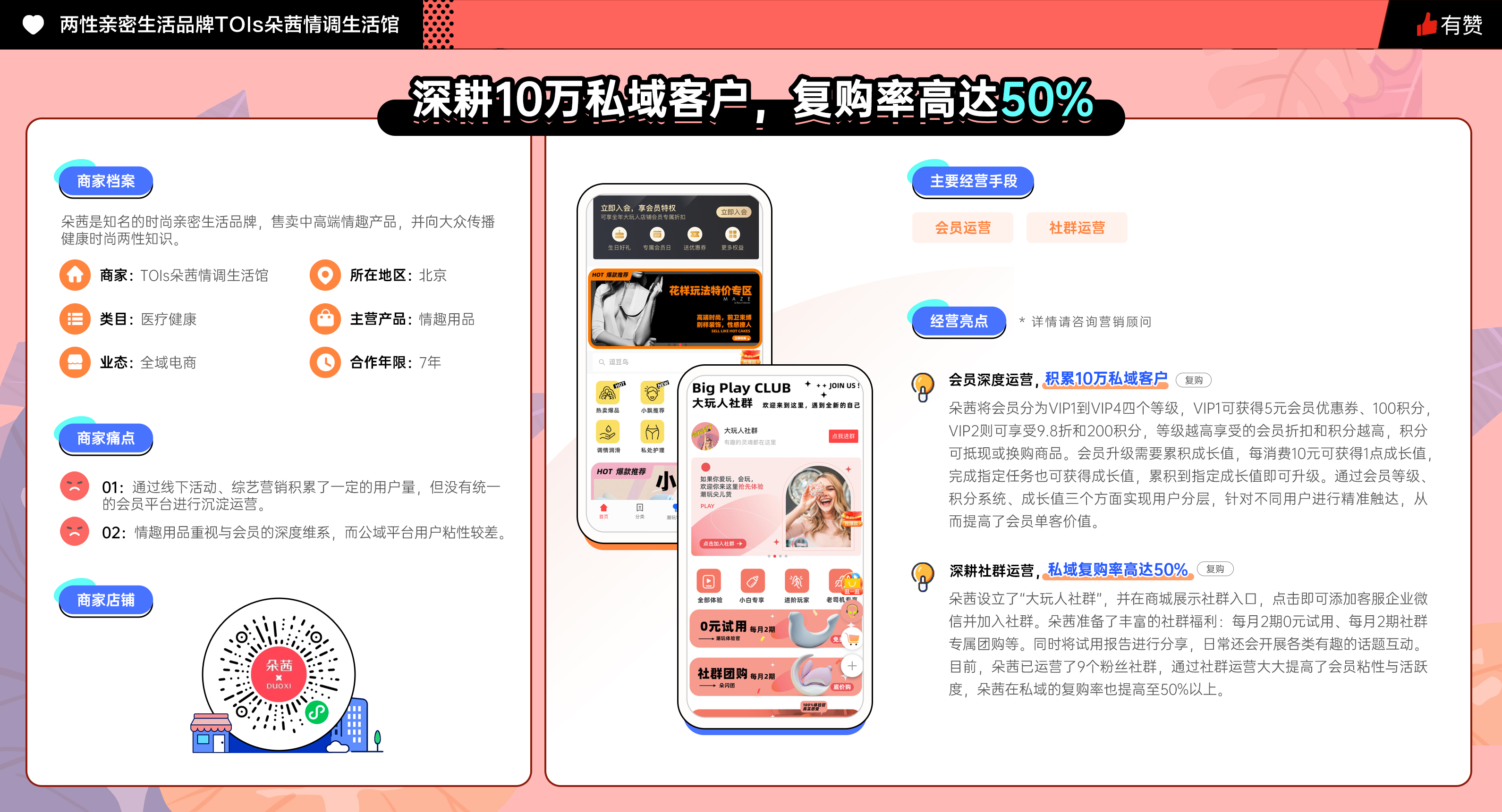 2.情趣用品重视与会员的深度维系,而公域平台用户粘性较差。