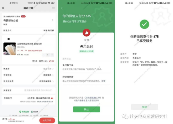 为了消除消费者的后顾之忧,提升交易转化率,有赞与微信支付分合作,特别推出了先用后付服务。