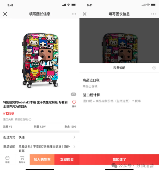 上图注释:商品详情页,购物车页,订单提交页,订单详情页展示文案均为——进口关税:商品已含税。