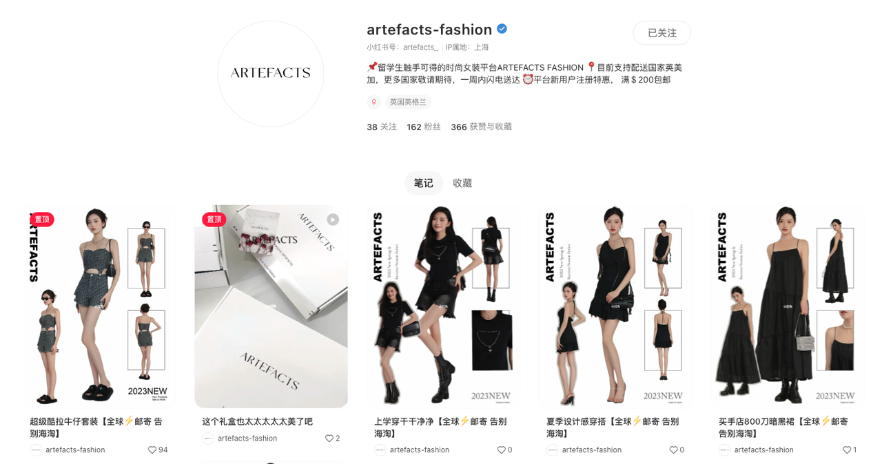 ARTEFACTS的目标受众是18-24岁的华人留学生,服装主打「高端平替」的中高端定位,目标市场包括英国、美国、加拿大、澳洲等国家。希望可以将中国高品质、小众设计感并有优势价格的服装销售给英美华人留学生群体,通过跨境电商的物流方式,一周内可以送达全球各个目的地,让她们可以在海外轻松购买衣服,告别「海淘时代」。