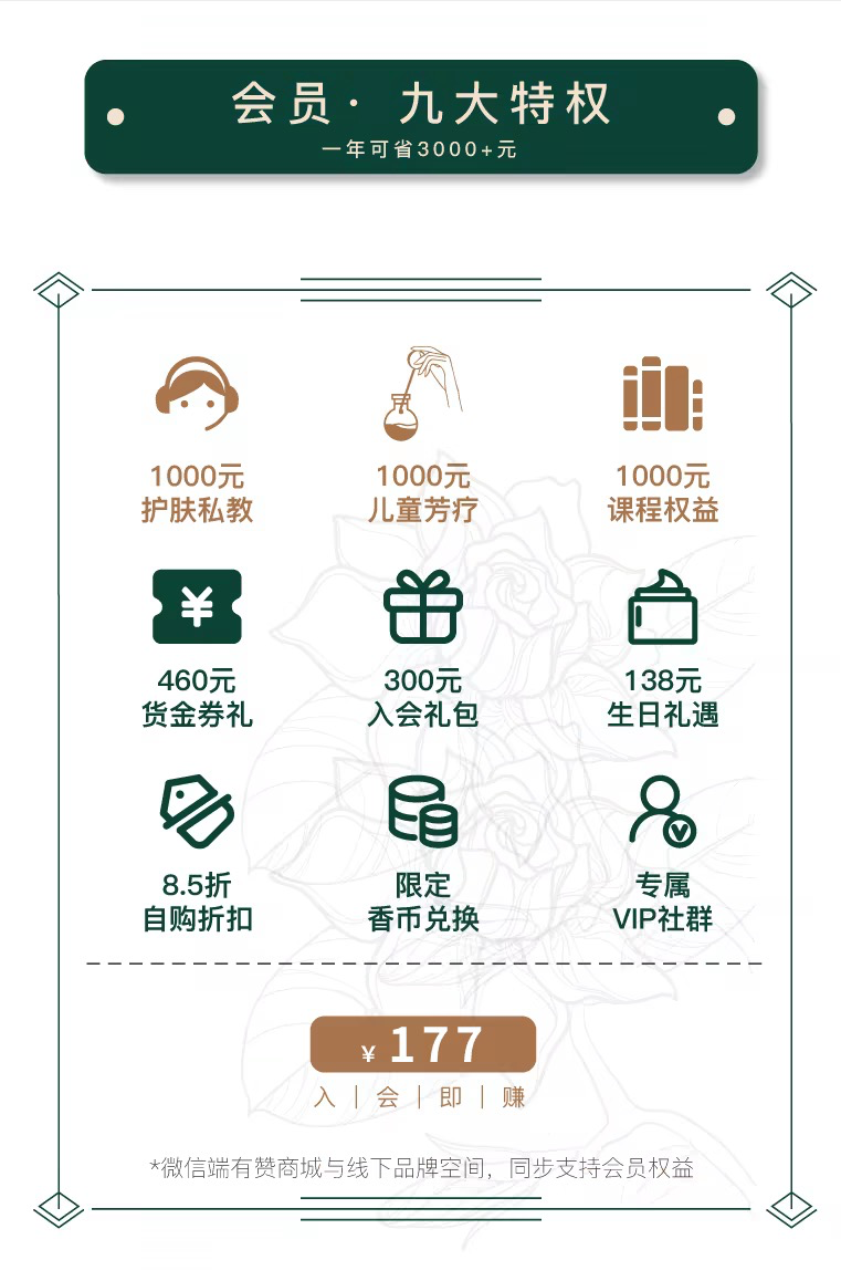 品牌通过设计177元会员卡,为会员提供9大特权,通过实物礼包、货金券等方式,提高了会员的价值感。在会员制度的运作中,XIANGQI香憩通过优质服务和精准营销,成功提高了老客户的复购率和新客户的转化率。
