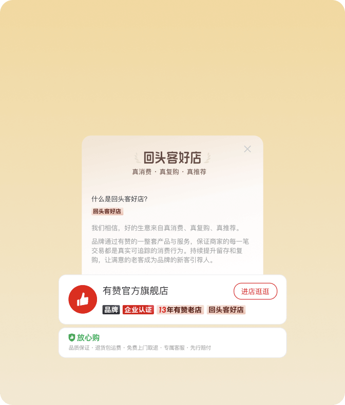 「回头客好店」是一种官方信任背书。当消费者看到该标识时,会更容易相信你的服务稳定、口碑可靠,从而降低决策成本,提升成交、复购和推荐意愿。对商家而言,这不仅是荣誉,更是对长期经营老客户成果的一种放大。