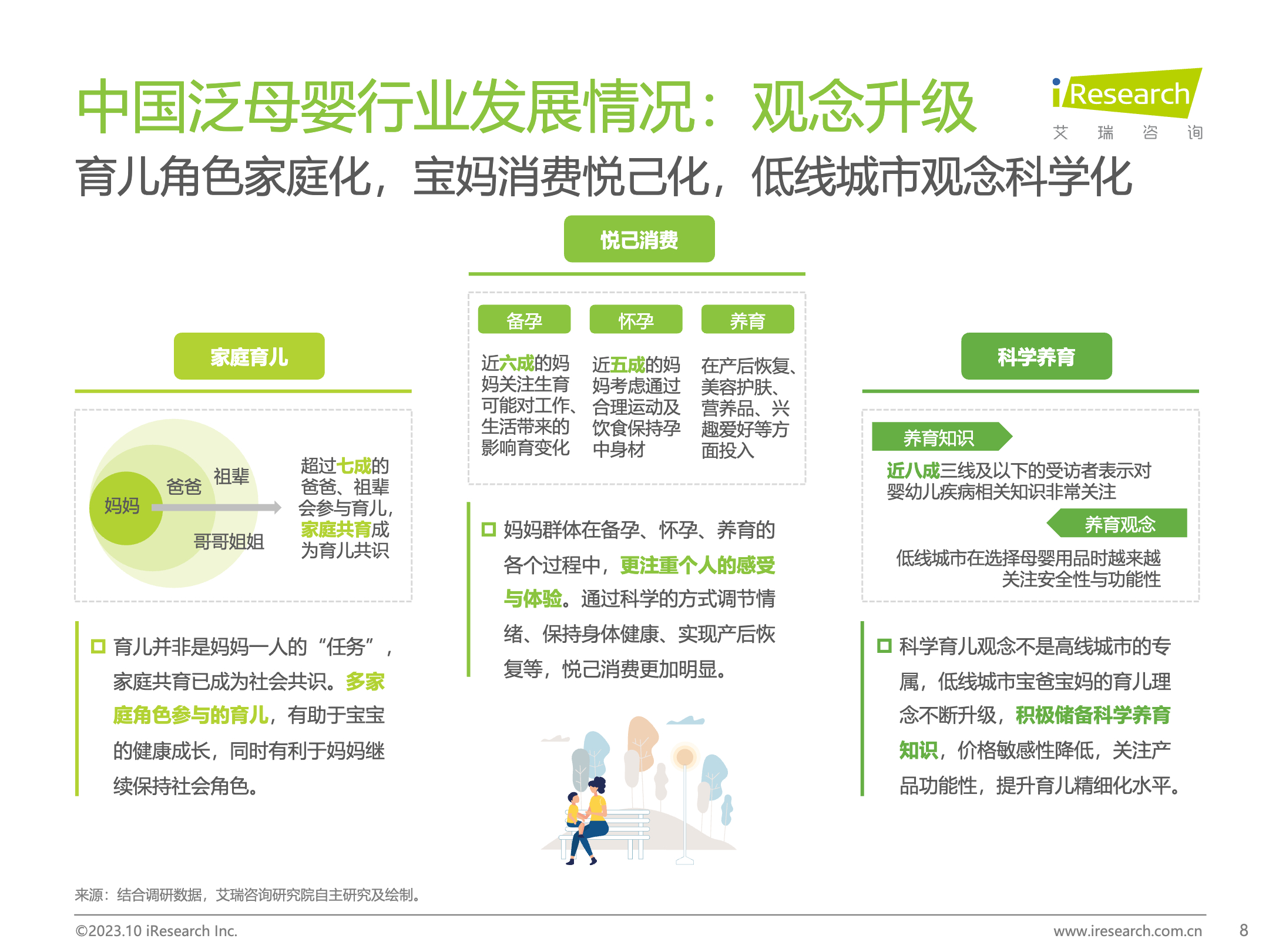 疫情后我国消费环境迎来复苏,即使居民消费仍然保持一定的谨慎和理智,但已展现出较为积极的消费活力。 科学化、精细化的育儿观念促使家长愿意将更多的精力和支出投入到育儿过程中,虽然出生率有所下降,但每个新生儿在成长过程中将会获得更多的投资。 在育儿方面,育儿角色家庭化,宝妈消费悦己化,低线城市观念科学化,体现在消费上有哪些变化和趋势?查看完整报告获取更多信息~