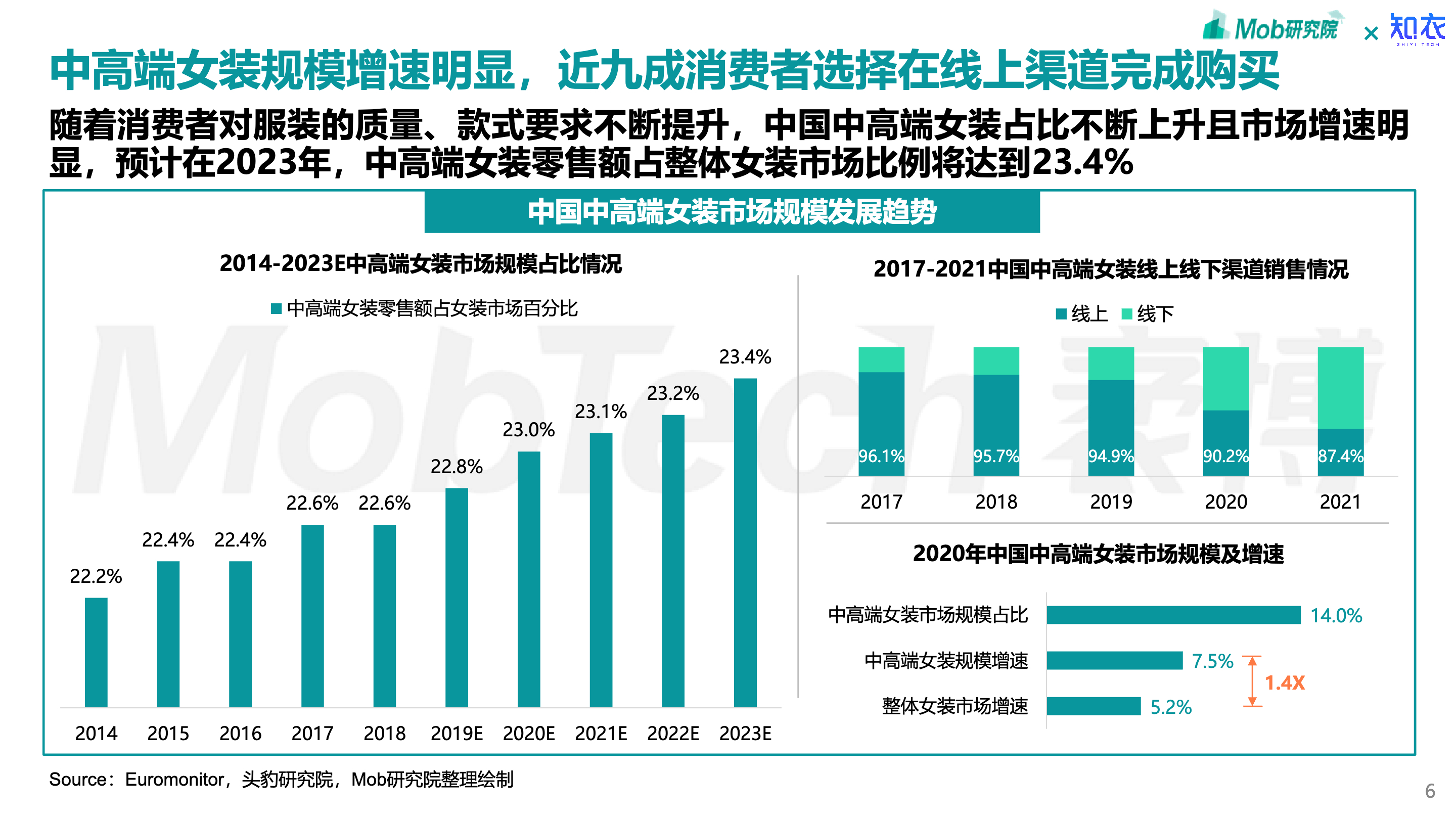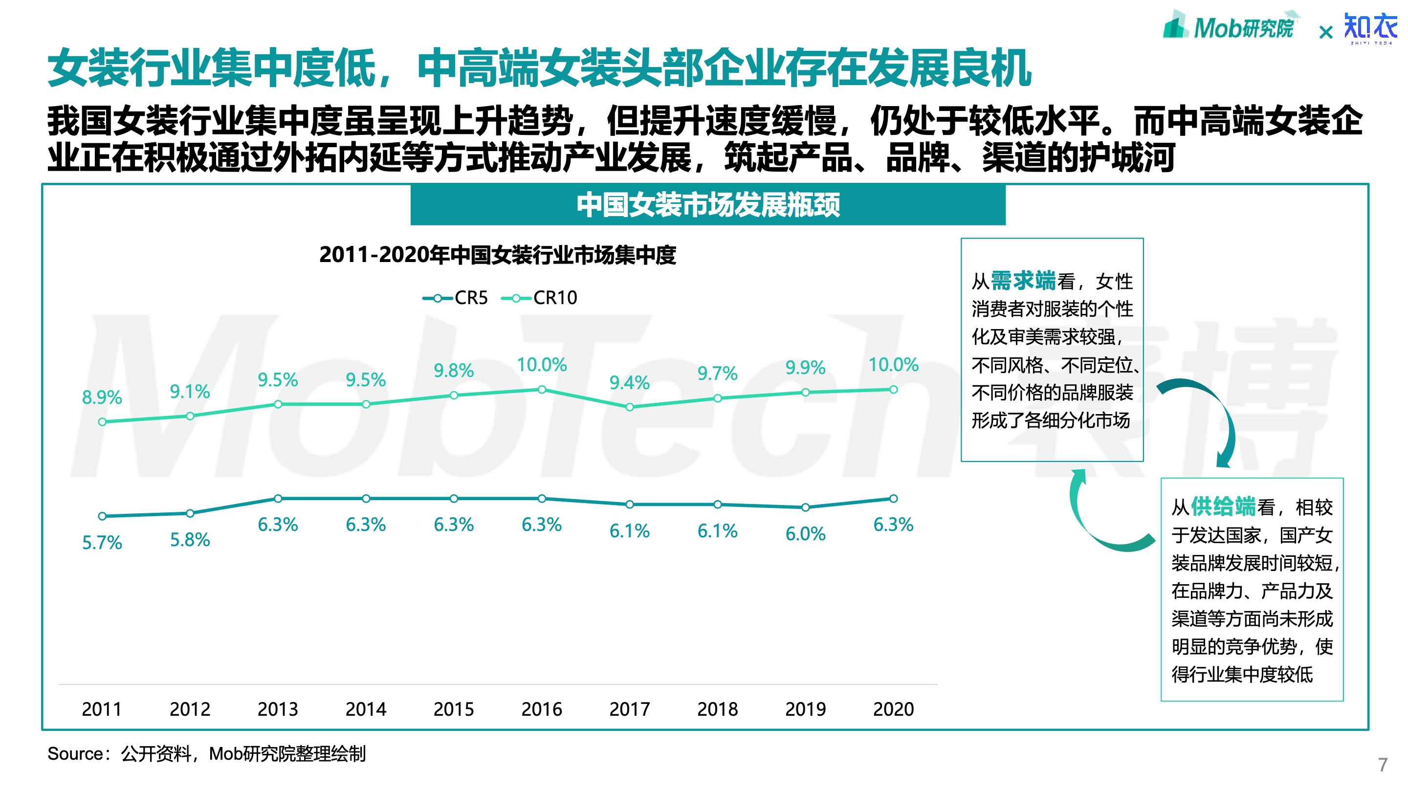 随着女性消费力及悦己等消费需求的不断升级,对服装材质、设计感的要求不断提升,中国女装市场消费潜力得到不断释放。 而Z世代、都市中产为主的消费者对品牌消费意识的持续升级,也让龙头企业市占率得到较大提升。 如何持续推动中高端女装平稳增长,稳固产品、品牌和渠道护城河,是每一家女装企业和经营者都应该思考的问题。