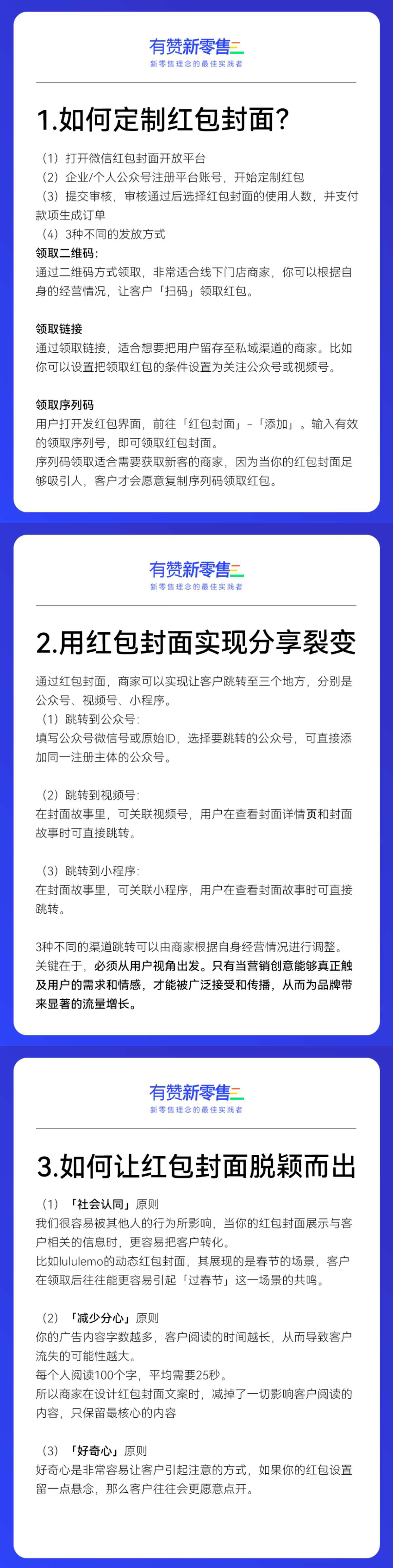 1.如何定制红包封面,让你不走弯路 2.如何通过红包封面实现分享裂变,用最小的成本撬动流量 3.如何让自己的红包封面脱颖而出,成为客户的第一选择 通过这三个原则,相信你可以设计出足够吸引人的红包封面,让你成为客户满意的选择。