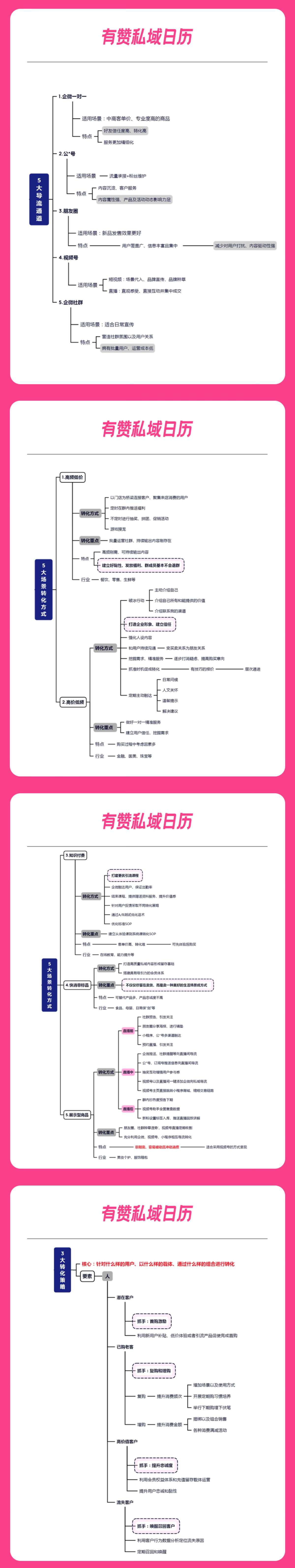 你是不是也以为私域流量就是简单的拉群、加好友、打折进行促销就能激化转化和裂变? 其实要真的做好转化需要考虑很多方面,今天就从以下3个维度涵盖13种方法,帮助提升私域转化率: 1.5大导流通道 2.5大场景转化 3.3大转化策略