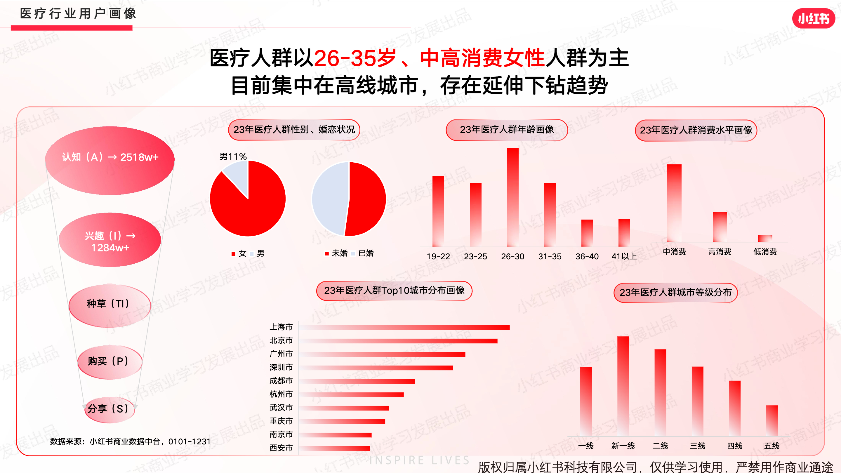 医疗行业商家如何在小红书掘金?是否有优秀的笔记可借鉴? 小红书的医疗受众用户画像如何?行业搜索趋势如何?热门项目搜索有什么趋势变化? 医疗行业商家如何在小红书进行广告投放?TOP搜索词、上下游搜索词、分城市赛道表现如何? 查看完整报告,帮你一一解答。