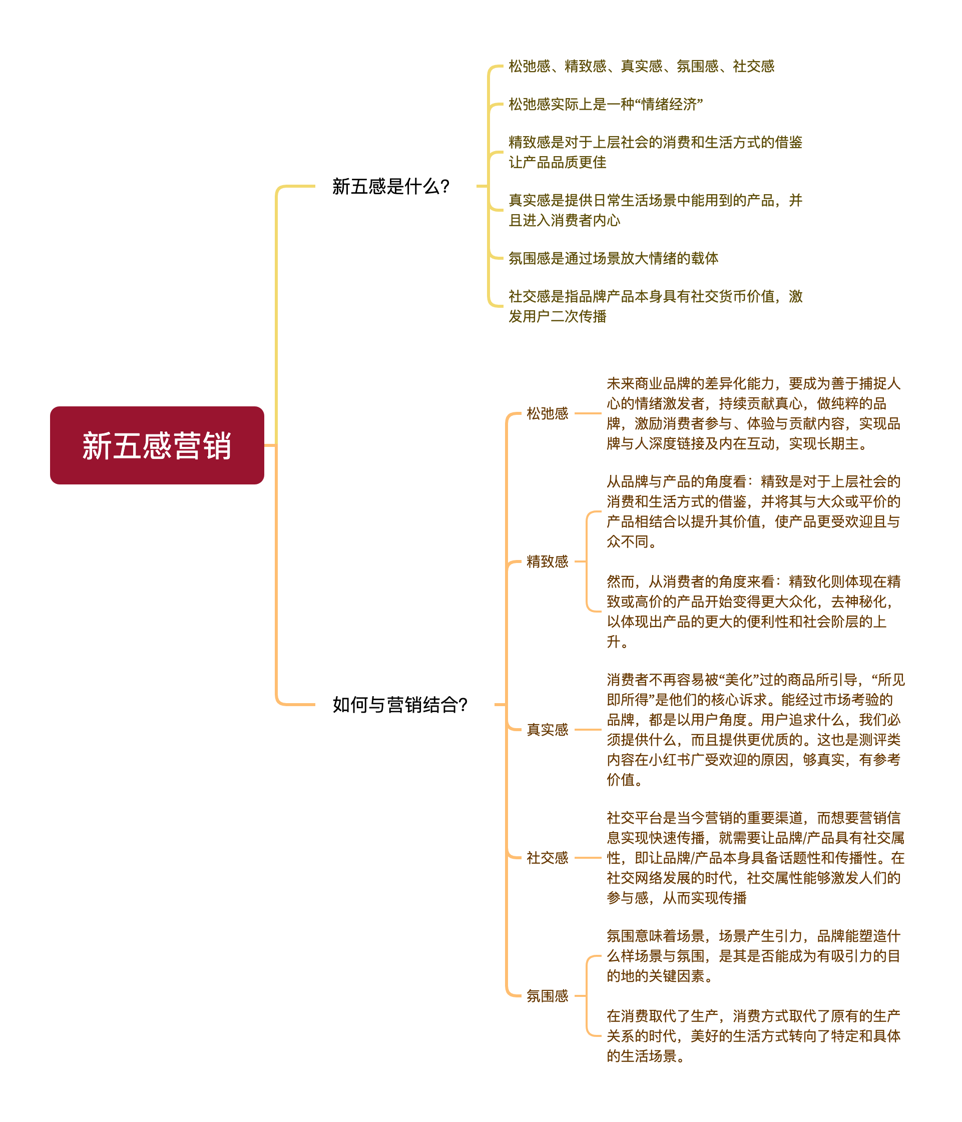 现今品牌们面对的是新消费群体一一Z世代人群。于是在品牌五感之上,又有了新的衍生,现在大多数品牌都在运用的营销手段——新五感:松弛感、精致感、真实感、氛围感、社交感。