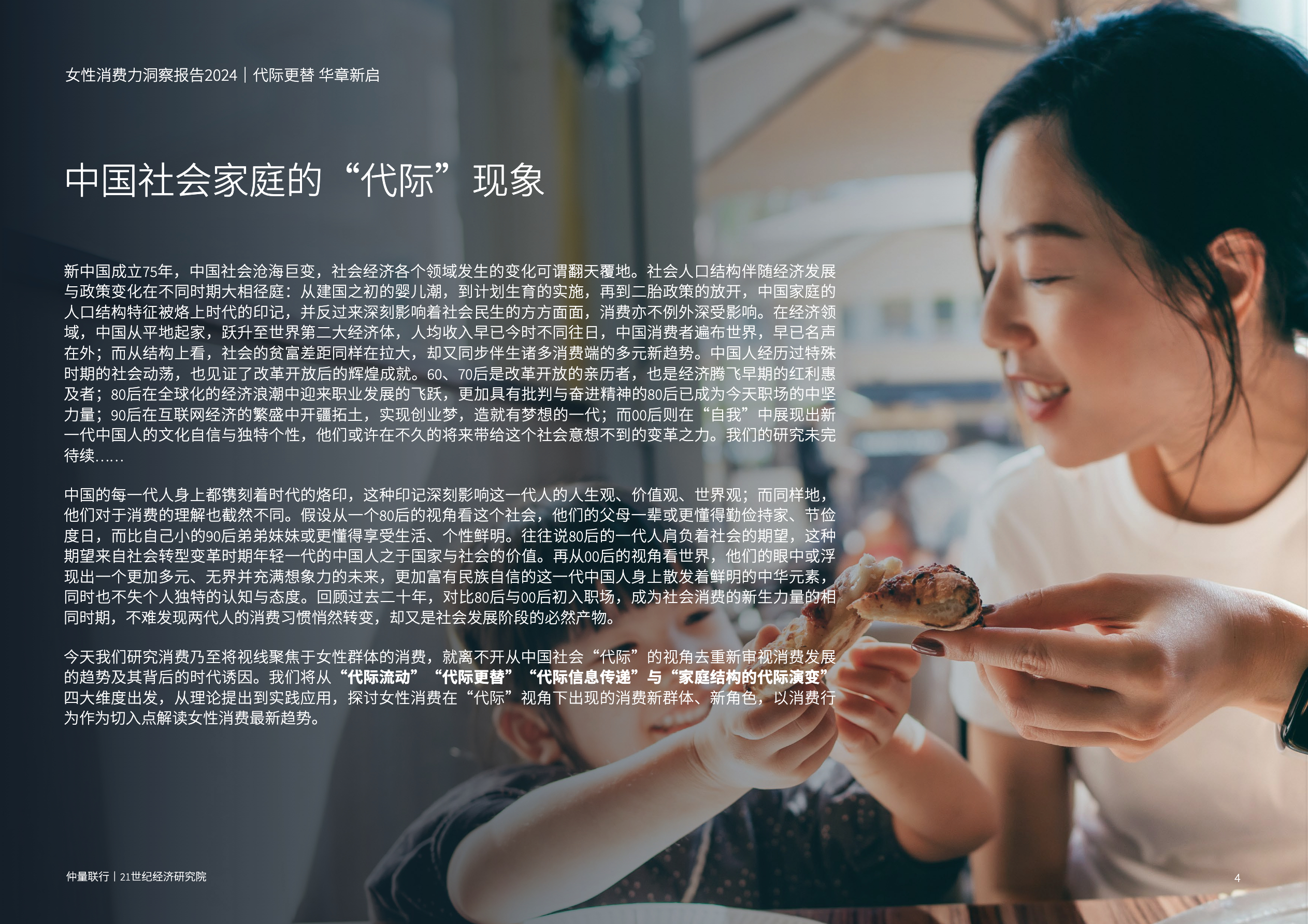 本报告我们将从去年女性消费研究的“存量”视角,转换为“增量”视角。从“代际更替”的全新研究模型切入,提出属于女性消费群体的“新 三代”,即“后Z世代少女”“千禧妈妈”和“岁月丽人”三大群体。 探索女性消费群体在社会角色发生代际变化后,是否会出现新的消费观、消费行为,及其对中国零售商业市场产生的深远影响。最后,零售商的各类市场主体又该如何应对代际更替带来的机遇与挑战呢?