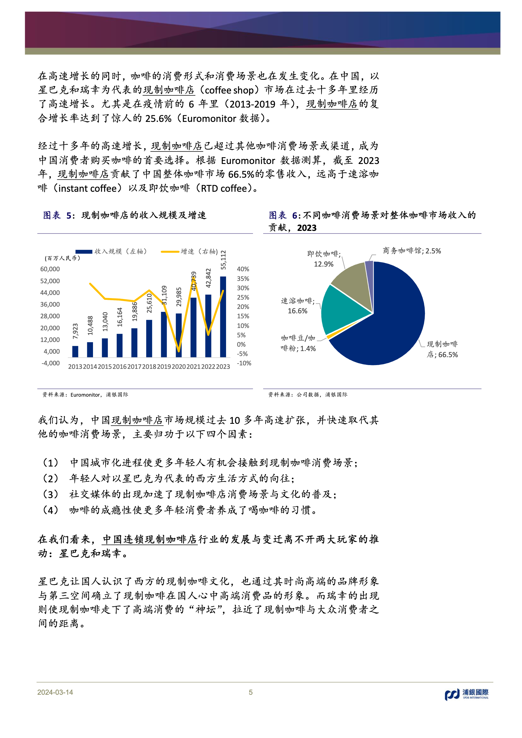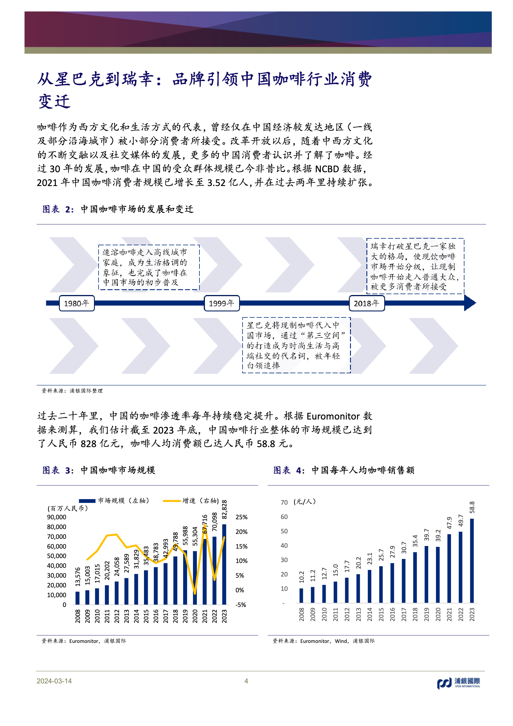 瑞幸咖啡出现之前,中国现制咖啡行业以价格高昂、产品单一著称,且主要布局高线市场,聚焦高端消费人群。 然而,瑞幸咖啡过去几年以丰富多样的产品以及亲民的价格拉近了现制咖啡与中国普通消费者之间的距离,从而大幅扩大了现制咖啡行业的受众群体。我们认为瑞幸咖啡的持续下沉有助于推动中国整体咖啡消费人口的提升,从而反向驱动瑞幸长期的扩张与发展。 那么瑞幸咖啡是如何顺势而为、涅槃重生的?它未来的成长空间还有多少?查看完整报告获得更多相关细节内容~
